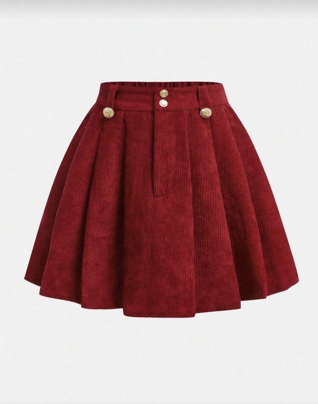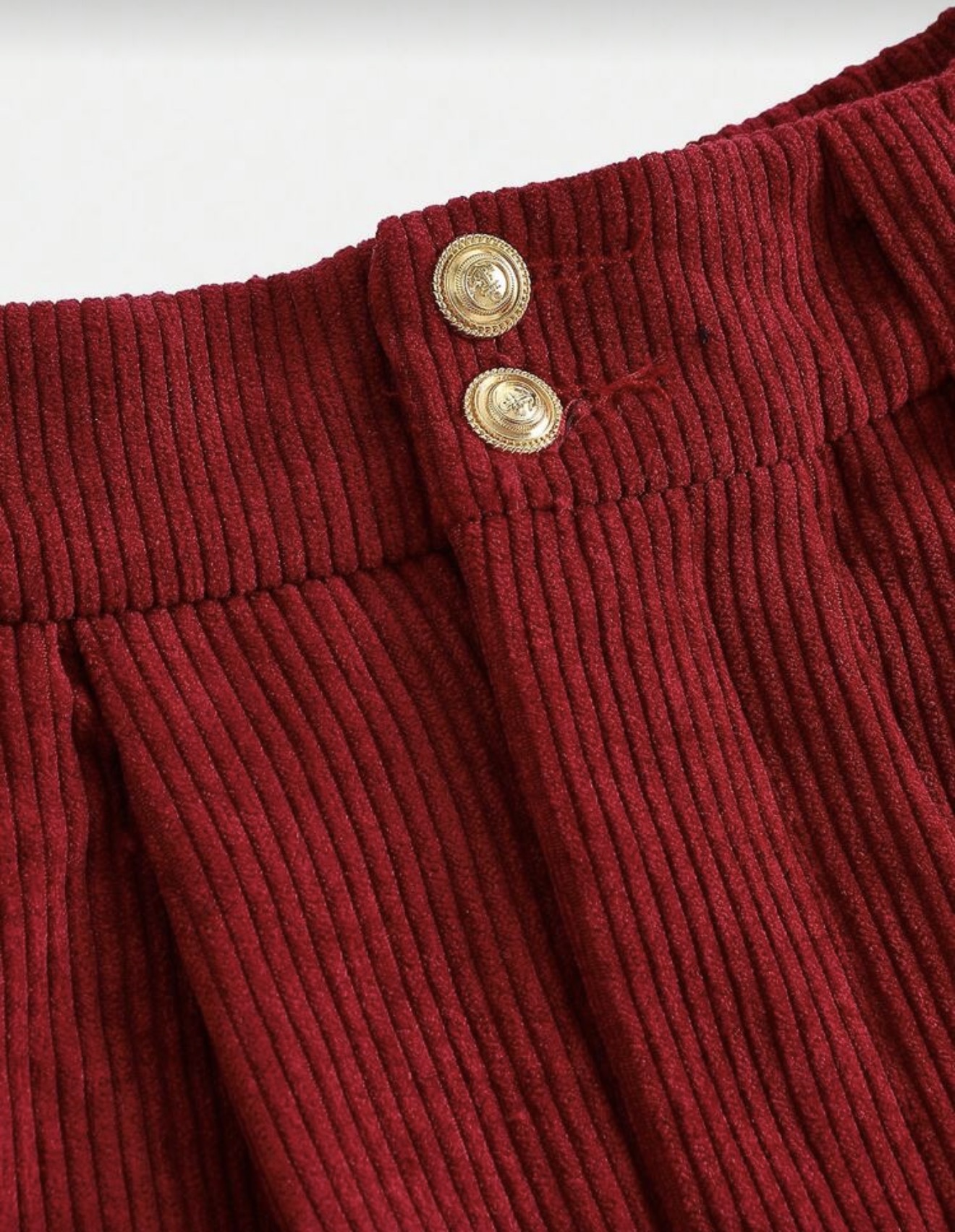 تنورة كوردوروي بأزرار مجعدة متوسطة الطول للفتيات المراهقات، خريف/شتاء