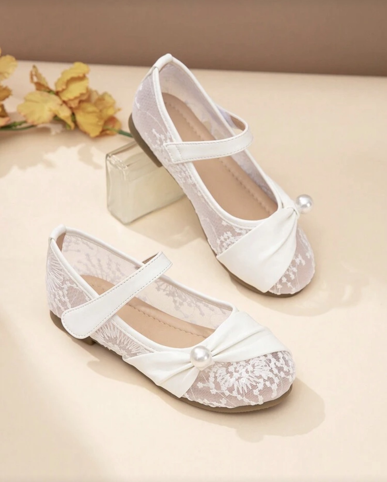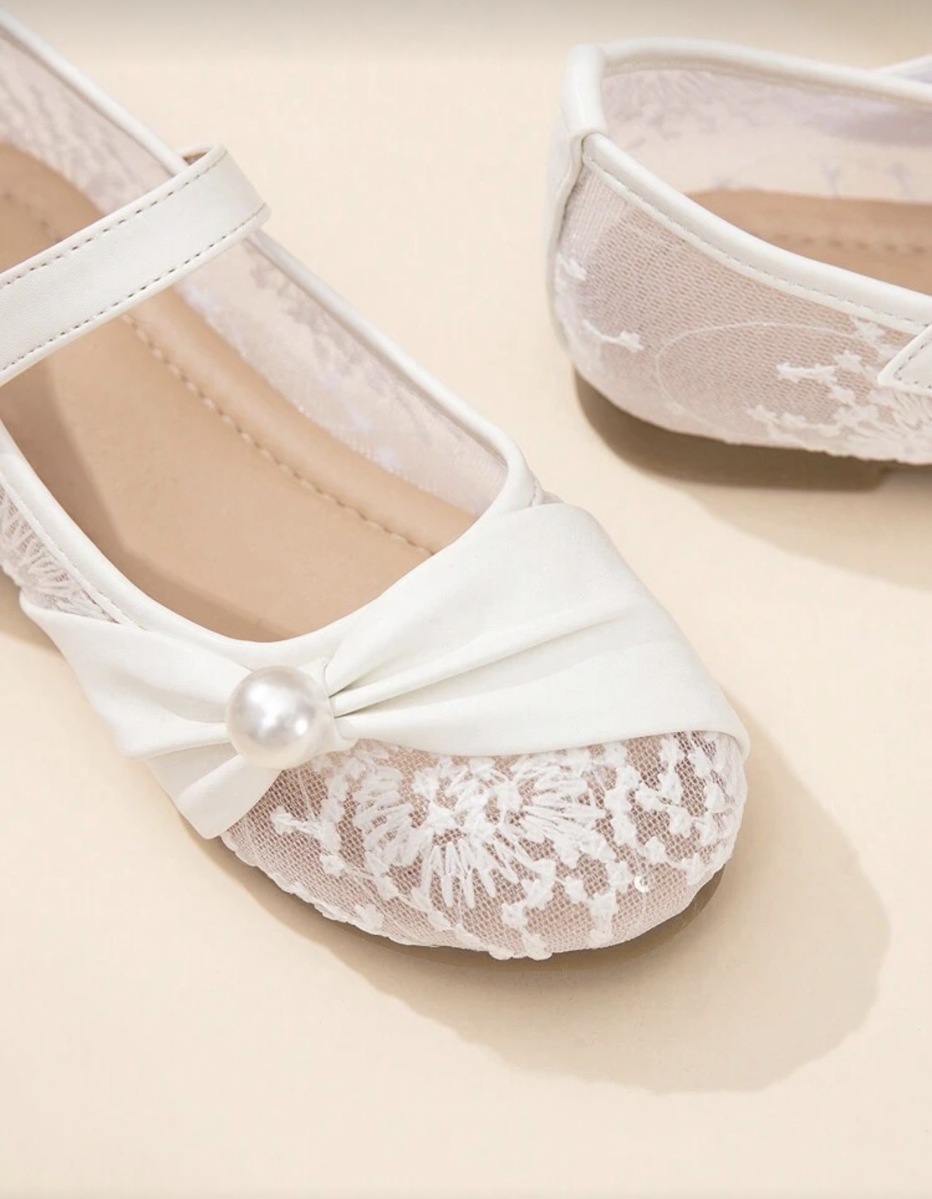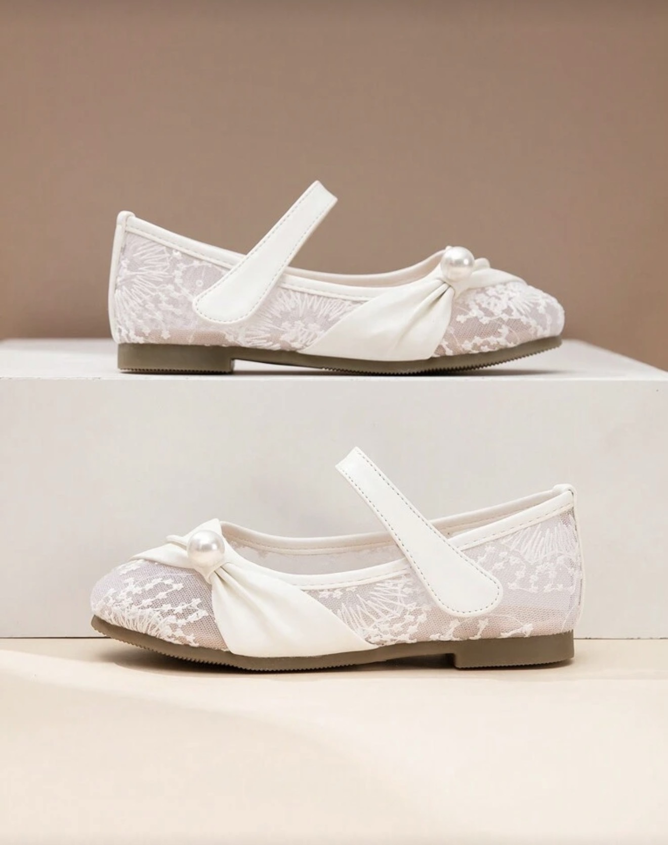 زوج واحد من أحذية القماش المنخفضة المزينة بالورود والأزهار للأميرات البنات، أحذية رقص باليه مريحة للطلاب للاستخدام الخارجي، أحذية زفاف بيضاء مطرزة بالدانتيل