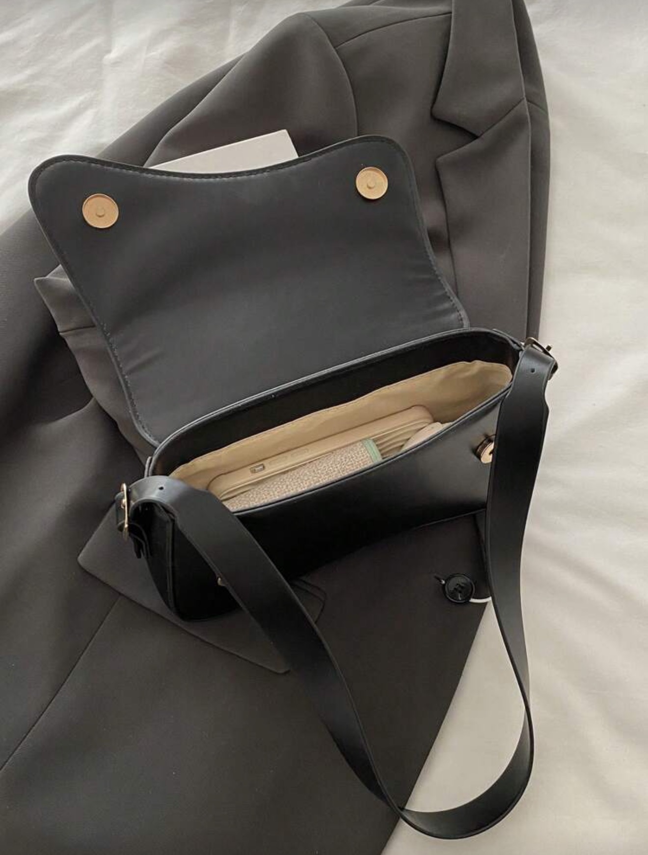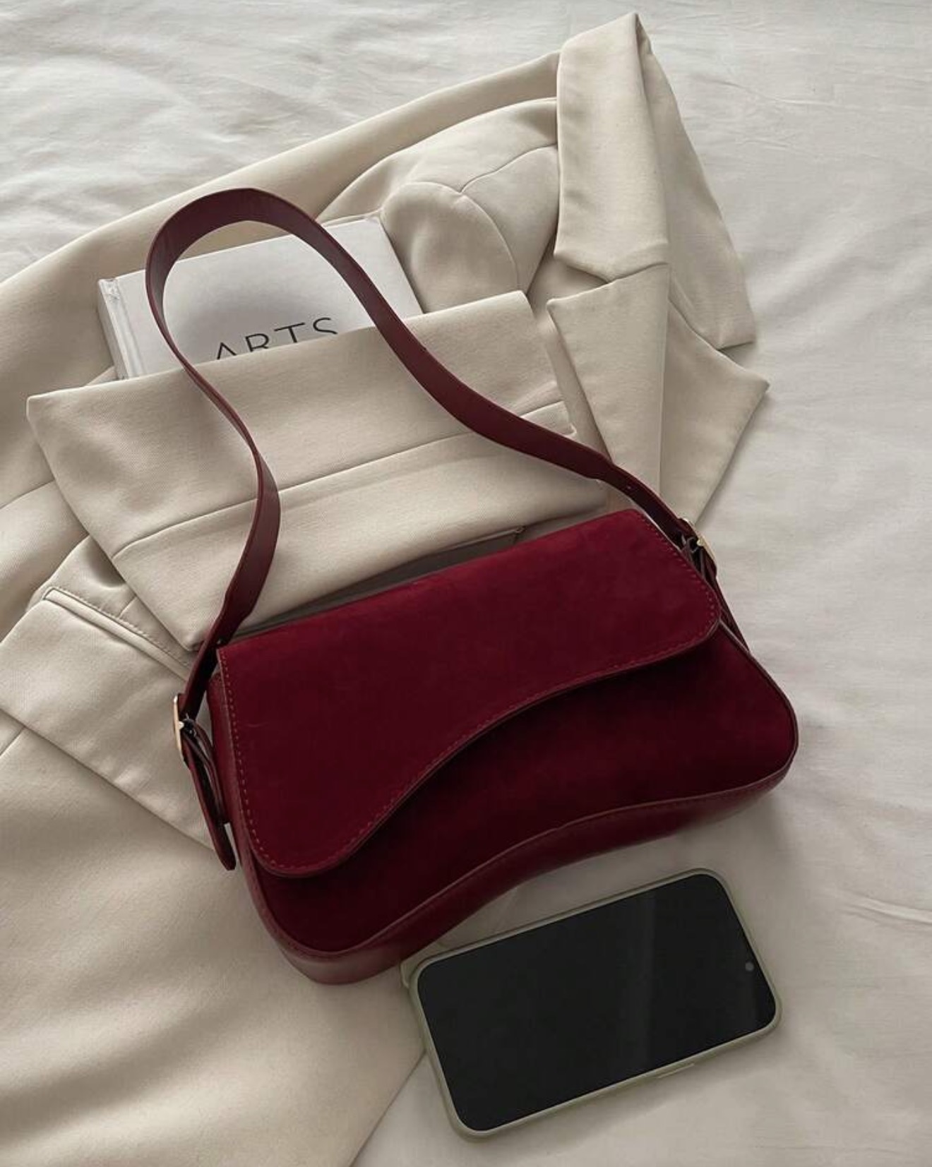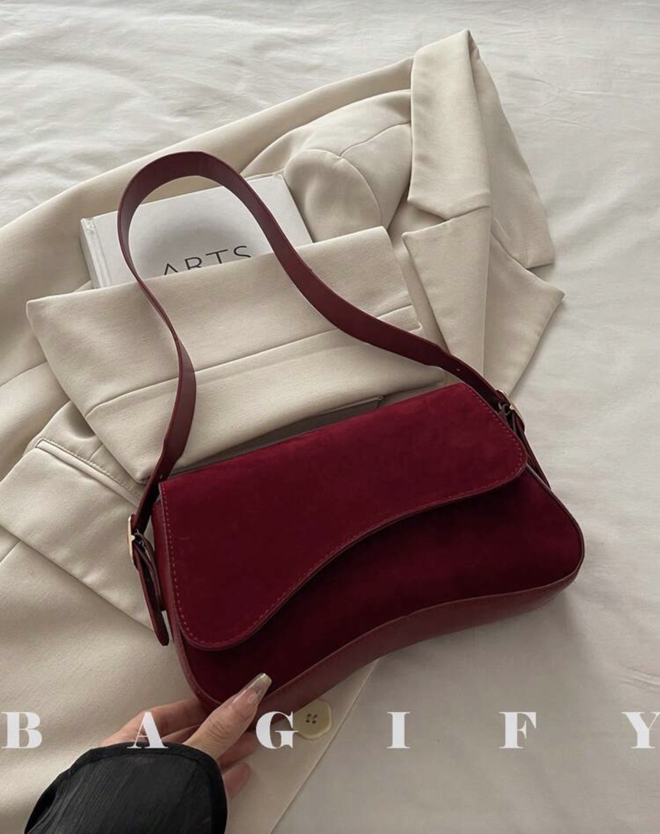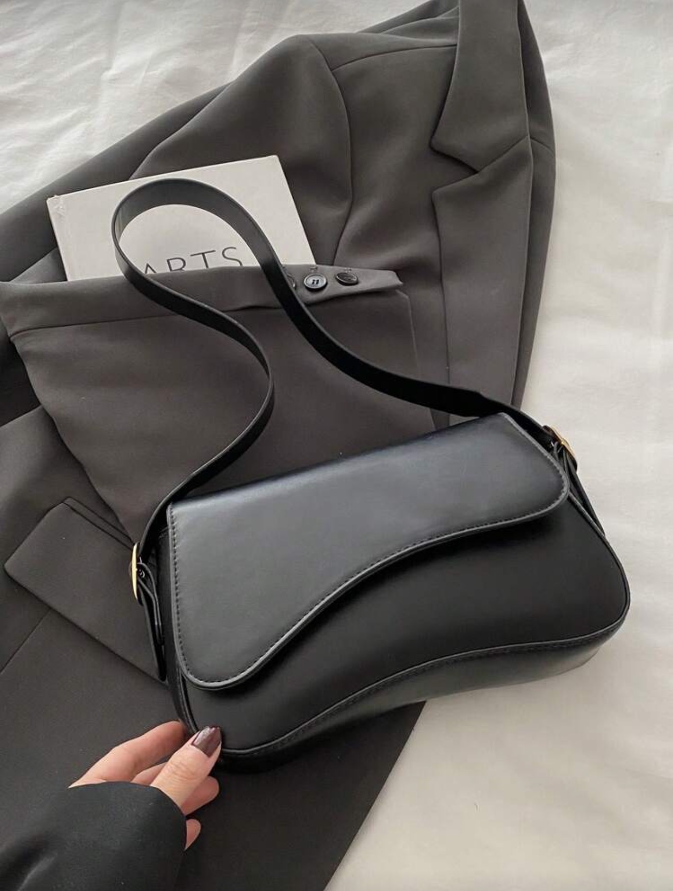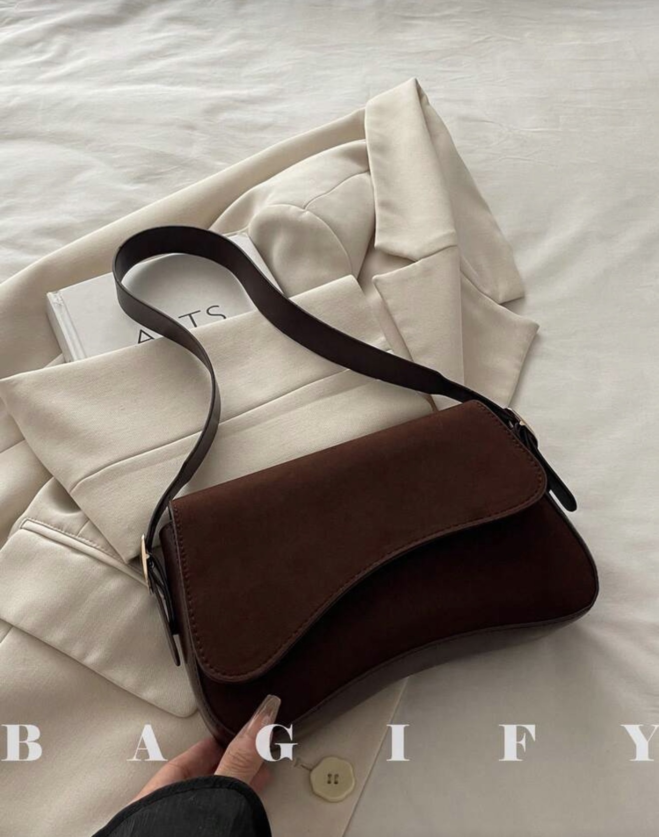 حقيبة كتف ذات لون أحادي بسيطة، حقيبة كروس نسائية كلاسيكية ذات نسيج مطبع