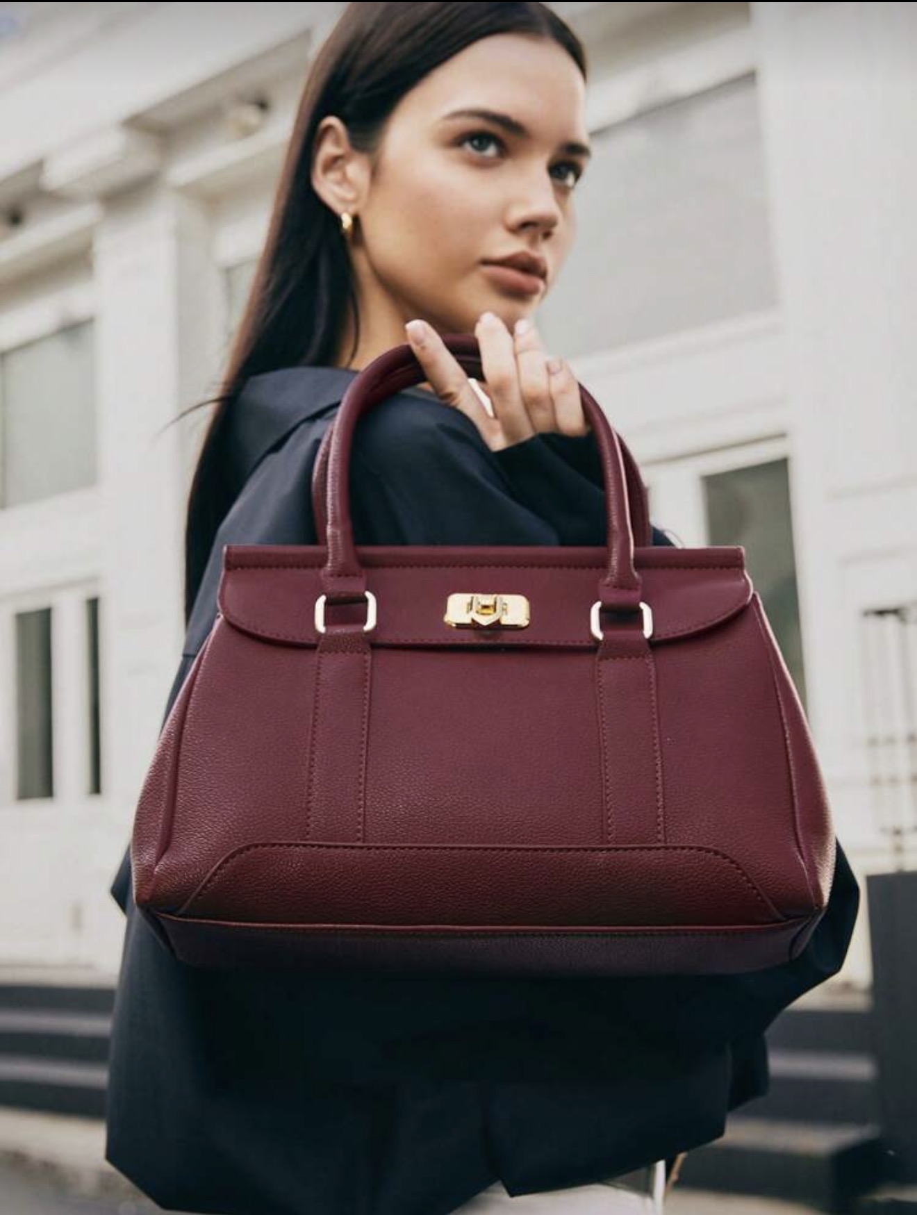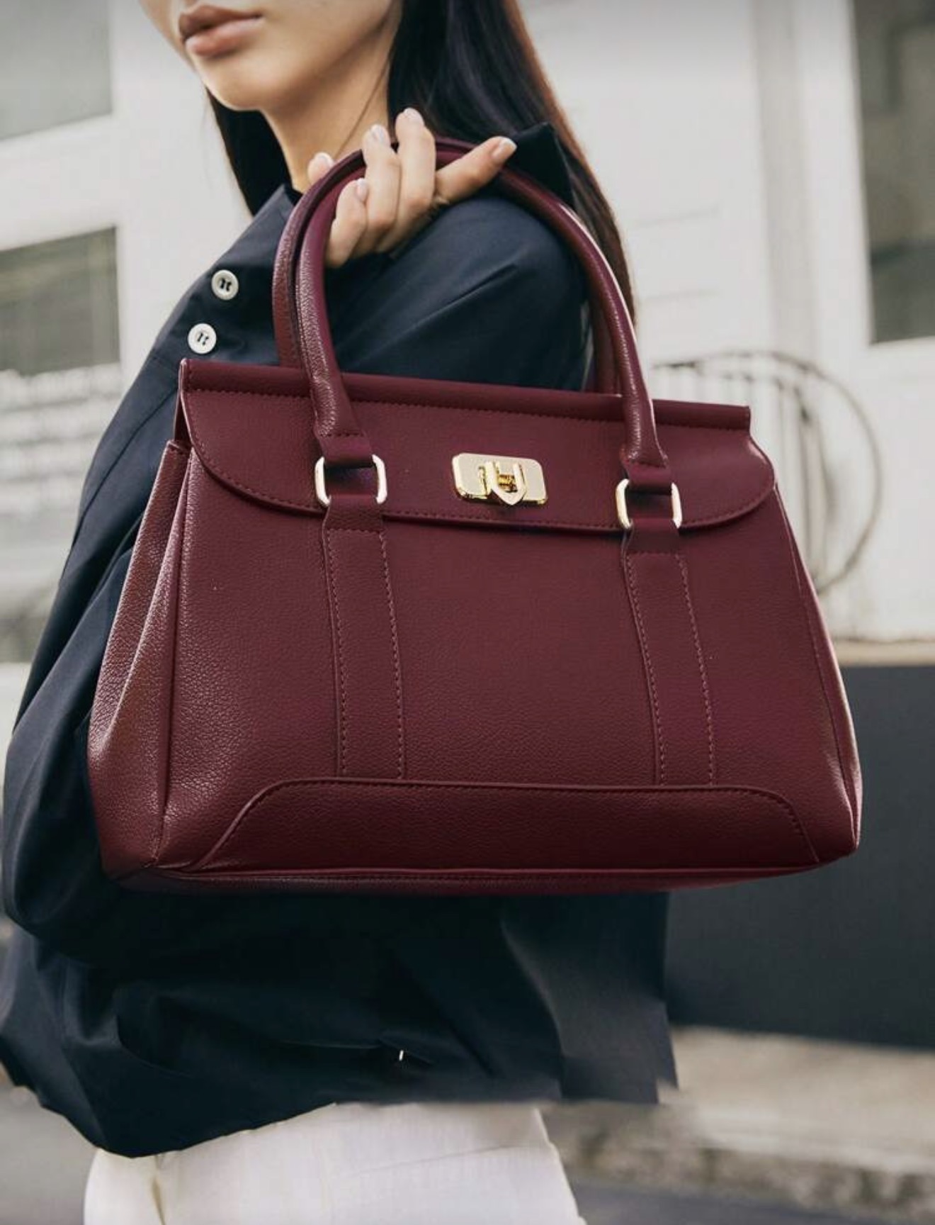 حقيبة أنيقة متعددة الاستخدامات للتنقل، حقيبة بلون البرغندي موضه، حقيبة عصرية أنيقة للنساء