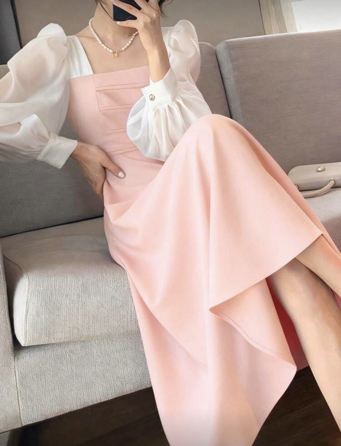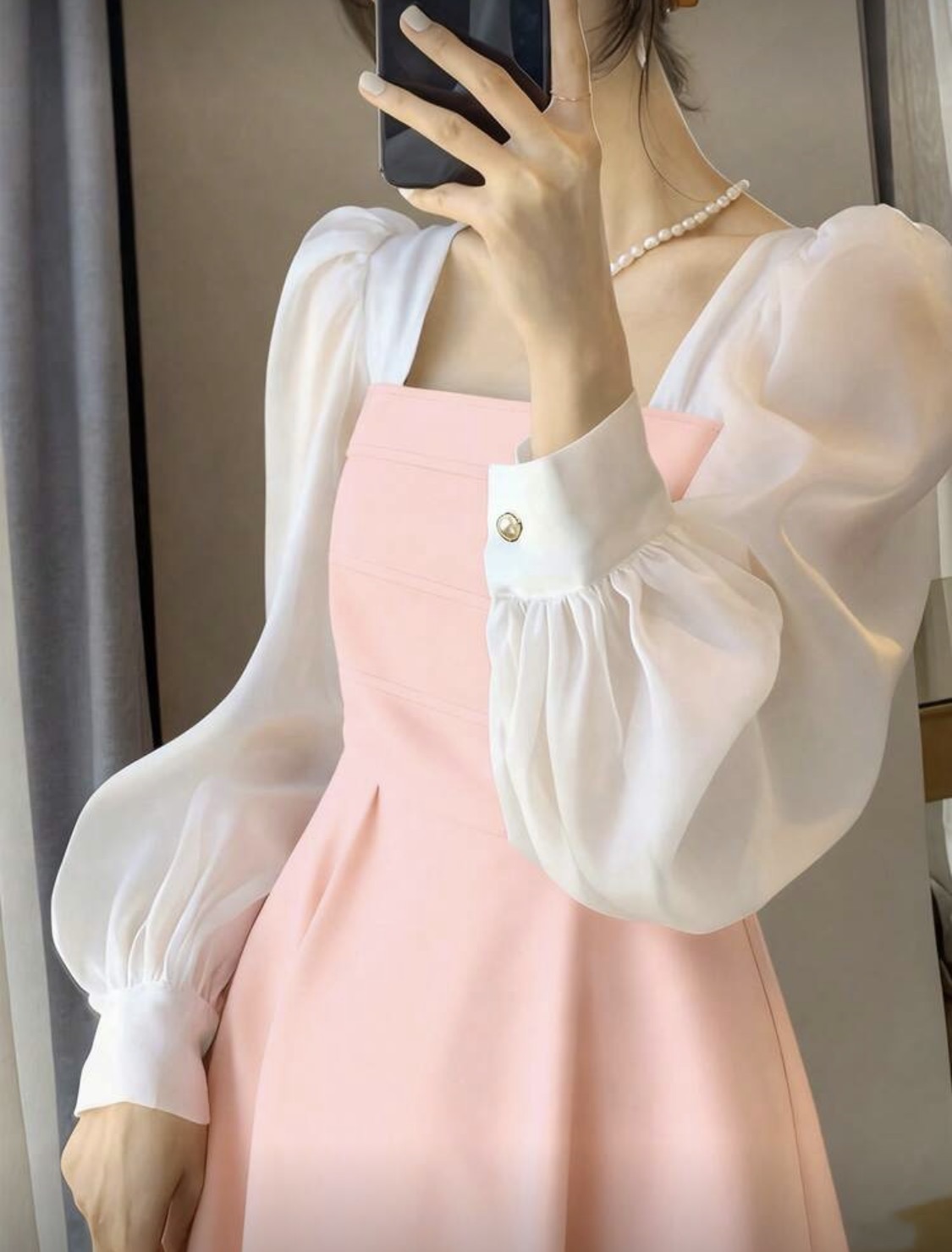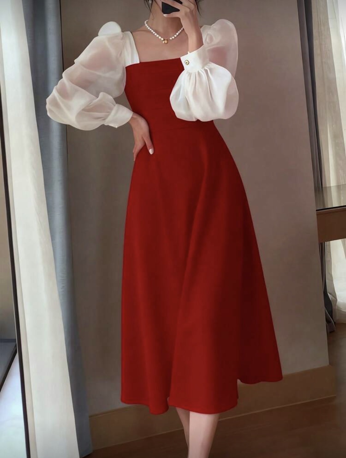 فستان بناتي أسود قصير الأكمام على الكتف بتنورة A مقاس طويل، أكمام منتفخة، رقبة مربعة، قصة فرنسية فاخرة شبه شفافة، مناسب للربيع والصيف والخريف، يصلح للارتداء اليومي والمناسبات الرسمية