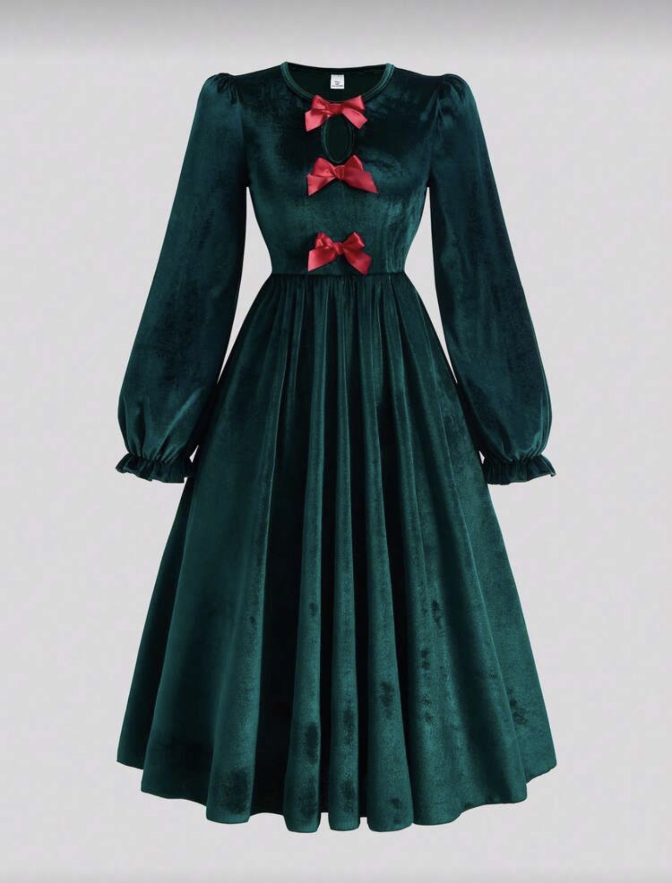 فستان مناسب للبنات المراهقات، مصنوع من قماش مخمل مضفر أنيق، بياقة دائرية وأكمام طويلة، مع تصميم رقعي في الذيل والخصر، مناسب للارتداء اليومي والمناسبات والحفلات